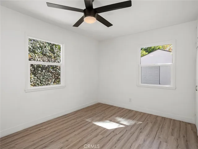 Nestled on a spacious 6,001 sq ft lot, this beautifully maintained 2-bedroom, 1-bathroom home offers 838 sq ft of inviting living space. Thoughtfully updated throughout, the home features a remodeled kitchen with quartz countertops, ample cabinetry, and a cozy dining area, perfect for everyday living and entertaining. The remodeled bathroom is stylish and modern, complementing the home’s overall charm. Enjoy original character touches like a decorative fireplace, paired with modern upgrades including a newer roof, copper plumbing, dual-pane windows, and a dedicated laundry room. The fully gated property also includes a detached 2-car garage with excellent ADU potential, offering flexibility for future expansion or income opportunity. Located on a gentle hillside, the home provides peaceful views and a sense of privacy. El Cariso, within walking distance, is much more than a golf course, with a baseball field, football field, pick-up soccer and basketball, tennis and pickleball courts, kids playgrounds, a community garden, exercise machines, and indoor programming. Also within walking distance is the May Canyon Truck Trail, adjacent to Veterans Memorial Community Regional Park, which is a local favorite for hiking. This is a perfect blend of comfort, functionality, and charm, a must-see!