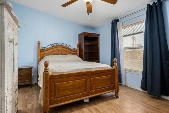 Welcome to this beautifully maintained three-bedroom, two-bathroom home offering comfort, accessibility, and style. This is a 55+ community. The spacious open floor plan is perfect for modern living, featuring wide entryways and thoughtful accessibility throughout. The updated HVAC system ensures year-round comfort, while the bright and inviting living spaces flow seamlessly into a well-appointed kitchen and dining area. Each bedroom is generously sized, and the primary suite includes a private bath for added convenience. Outside, enjoy a good-sized yard–ideal for gardening, relaxing, or entertaining. This move-in-ready home combines function and charm in one perfect package. Home as a Wheel Chair Ramp. No rentals allowed.
