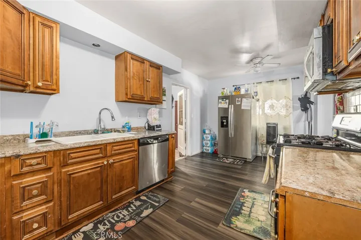 Welcome to this 3 bed, 2 bath home with laminate flooring, tile flooring in bathrooms, formica kitchen counter tops, spacious master bedroom with, 2 car garage, sprinklers on front and back yard. Spacious back yard with fruit trees. The relaxing covered patio for entertainment. Close to shopping centers, dining, schools and the 15 and 91 freeways!