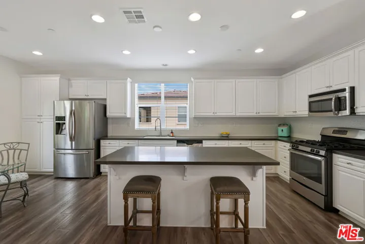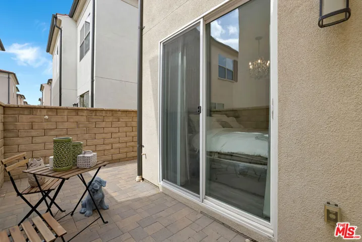 YOUR NEW HOME AWAITS IN BEAUTIFUL VILLA METRO! Welcome to resort-style living in the highly sought-after gated community of Villa Metro where modern design meets California charm. This stylish two-story detached home offers 2 bedrooms and 2 baths, featuring elegant wood-laminate flooring, plush carpeting, and designer accent walls throughout. The first-floor primary suite offers the perfect retreat with a private bath and sliding glass doors that open to your own tranquil patio. Ideal for morning coffee or quiet evenings. The open-concept upper level is bright and airy, boasting a chef-inspired kitchen with crisp white cabinetry, stainless-steel refrigerator, and appliances. A center island with bar seating that flows seamlessly into the dining area and cozy living room. Step through the sliding door to your covered balcony, a perfect spot to unwind and enjoy the breeze. Down the hall, discover the charming custom sky-blue barn doors leading to your second bedroom with its own a full bath, stackable washer/dryer, and convenient hallway storage. Enjoy direct access to your two-car attached garage, plus all the perks of Villa Metro’s resort-inspired amenities a sparkling pool and spa, kiddie pool, clubhouse, BBQs, fire pit, community garden, bike path access, playground, and scenic courtyards perfect for evening strolls. Ideally located just minutes from the Metrolink station, shopping, dining, Six Flags Magic Mountain, and top-rated schools. This corner home is filled with natural light and designed for comfort, convenience, and effortless living! Low Mello Roos $1,484.00