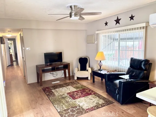 Step inside to a spacious floor plan featuring raised ceilings in the living area, creating an open and airy feel. The eat-in kitchen offers abundant storage and comes equipped with an oven/range, refrigerator, dishwasher, and microwave. The living room opens directly onto a large covered patio, perfect for relaxing or entertaining. The second bedroom, currently used as an office/storage area, includes a stackable laundry unit for added convenience. The bathroom features a tub/shower combo and plenty of space. The primary bedroom boasts a wall of closets and large windows that fill the room with natural light. Recent updates include a newer foam roof (approximately 4 years old), newer HVAC system, and a newer swamp cooler. Residents of Tramview Mobile Home Park enjoy access to a large swimming pool and spa, a clubhouse with entertainment areas, two kitchens, a piano, pool table, and card tables for owner use.