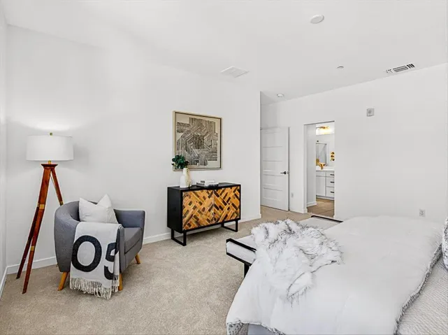 This townhome is located in one of San Joses most desirable newer communities, known for its modern urban-style architecture and vibrant community of young professionals, offering a peaceful yet dynamic lifestyle. Landscaped surroundings and a low HOA fee provides excellent value. Three bedrooms and three bathrooms offer generous space and thoughtful design throughout. An open and airy layout highlighted by high ceilings and abundant natural light. The living room, dining area, and kitchen flow together in a spacious layout that extends to the outdoor balcony. On the main level, a bedroom suite with a private balcony provides flexibility for guests, or extended family. Upstairs, the primary suite an additional bedroom with walk-in closet, each designed for comfort and privacy. Every room enjoys bright sunlight and modern finishes. The 2-car garage equipped with an EV charger. The brand-new carpet, premium appliances, and contemporary finishes elevate the sense of quality and style. With its move-in-ready condition, high-end details, close to major highways/shopping/dining, and leading tech companies, this home offers the perfect combination of living and comfort. Experience the best of Silicon Valley living in this elegant and beautifully maintained residence.
