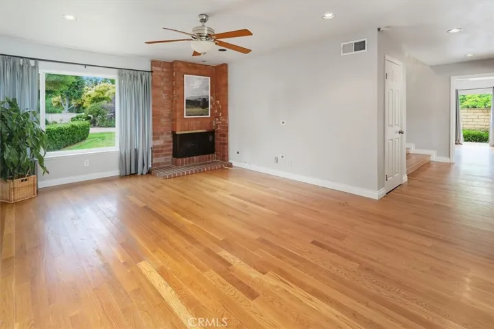 Back on the market at no fault of the home or sellers! End-of-cul-de-sac home with large backyard including a pool, spa, and no rear neighbors in the sought-after Old Orchard 2 neighborhood of Valencia. This five-bedroom, three-bathroom home sits on a bonus-size lot offering added privacy and outdoor living space. The backyard features a sparkling pool and spa surrounded by mature landscape and open sky views. Inside, the updated kitchen includes modern cabinetry, stone counters, and stainless steel appliances. There are two fireplaces, one in the family room and one in the living room, adding warmth and character to the floor plan. A downstairs bedroom and bathroom with walk-in shower provide flexibility for guests or multi-generational living.