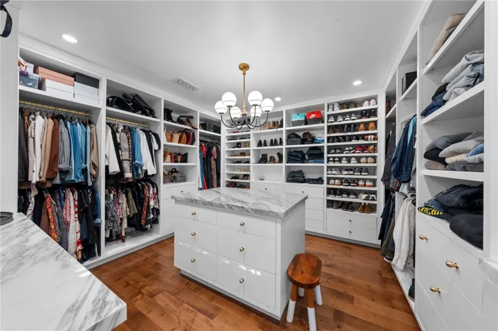 Beautifully renovated Encino estate set on an expansive 15,000sqft flat and fully usable lot. This exceptional property features 6 bedrooms, including a detached 600 sqft ADU. Set off the street with a generous grassy front lawn, this home offers privacy, charm, and plenty of space to relax or entertain. Upon entering, you’re greeted by vaulted ceilings with exposed beams and a seamless open-concept plan. The great room features a custom Italian marble fireplace and flows into the dining area, ideal for hosting gatherings. The chef’s kitchen is adjacent to the family room complete with a sleek bar and cozy, wood-burning fireplace. The two powder bathrooms showcase stylish vanities and limewash / roman clay walls. All bedrooms are thoughtfully tucked away from the main living spaces for maximum privacy. The primary suite is a true retreat—featuring an Italian marble rain shower with bench and niche shelving, a free-standing soaking tub, double sink vanity and a custom make-up vanity. A highlight of the primary suite is the massive walk-in closet centered around a marble island and Soho Home chandelier, plus a bonus coffee station with mini fridge. The home is designed to wrap around the serene backyard with multiple access points through french doors. Step outside to enjoy the sparkling saltwater pool/spa with rock waterfall, the shaded courtyard, vegetable garden, or play on the low maintenance turf. This property offers a detached ADU structure featuring 1 bedroom, 1 bathroom, and a full kitchen and living space, perfect to utilize as a guest house, game room/pool house, or private office. Situated adjacent to Libbit park and within the Hesby Oaks school district, this is a rare offering in a sought-after location. This turnkey property combines elegance, convenience, and thoughtful design at every turn. Bonus Alert: EV charger in garage, security cameras, bonus massage room/mini gym/kids study, large laundry room with ample storage.