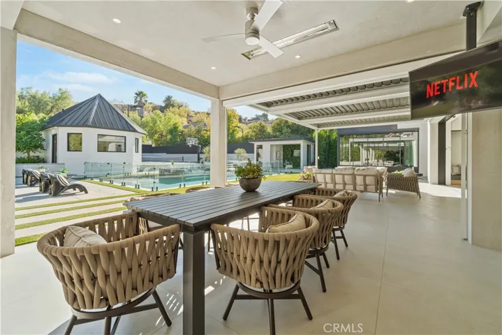 STUNNING LUXURY MANSION SOUTH OF VENTURA (24 HOUR ARMED GUARD GATED COMMUNITY), WESTCHESTER COUNTY home to just 160 residences, this showcase estate redefines modern luxury. Set on nearly one acre and completely reimagined down to the studs in 2023 with over $2 million in recent upgrades, this 10,000+ sq. ft. masterpiece offers an unmatched level of privacy, sophistication, and cutting-edge design. Step inside to soaring cathedral ceilings, Custom Designer Chandeliers, dramatic floor-to-ceiling marble fireplaces, and seamless indoor-outdoor living with automatic pocket doors and Lutron smart home automation controlling lights, shades, TV’s and premium sound (interior/Exterior) throughout. The residence boasts a state-of-the-art security system with interior/exterior cameras, a Control4 system, and a fully soundproof oversized home theater with, Premium Sound Package, massive Upgraded Projector Screen, and a walkout enclosed patio. The chef’s dream kitchen showcases Two 12-foot waterfall islands, a walk-in pantry, 2 Dishwashers, full-size refrigerator & freezer, high-end appliances, and a custom wine display. Upstairs, you’ll find 5 en-suite bedrooms, each with custom cabinetry and walk-in closets. The primary suite impresses with Custom Fireplace, Sitting Area, 2 oversize walk-in Closets 1 that has its own ELEVATOR an Oversize Spa like bathroom with Huge Rainfall Shower, Separate Tub, Vanity Area, and Walk-out balcony overlooking park like grounds. The amenities continue with two laundry rooms, a three-car garage with metallic epoxy floors, and a massive lOFT space ideal for a gym, office, or playroom. Outdoor living rivals a resort with designer Lighting, landscaping, multiple entertaining patios, outdoor grill, cabana, custom glass pool fence, GLASS SPA, putting green, and full-size NCAA basketball court /Tennis Court. Outdoor Shower, A detached guest house provides additional flexibility. A Main Level En-Suite Bedroom perfect for guests. The Ideal Floorplan. This estate offers the perfect blend of modern technology, refined elegance, and resort-style luxury in one of the most coveted gated communities south of Ventura WESTCHESTER ESTATES A TRULY REMARKABLE NEIGHBORHOOD. Like no other, Patrolling armed Guard, Street Surveillance. A true forever dream home and one of the Safest Neighborhoods in LA for the most discerning buyer. UPGRADES SHEET AVAILABLE UPON REQUEST Minutes to the 101, Target, Costco, Topanga Village, Fine Dining, Shops and Restaurants.