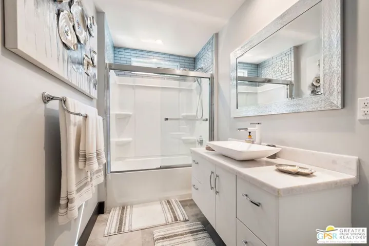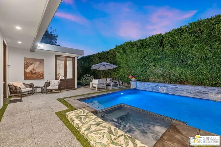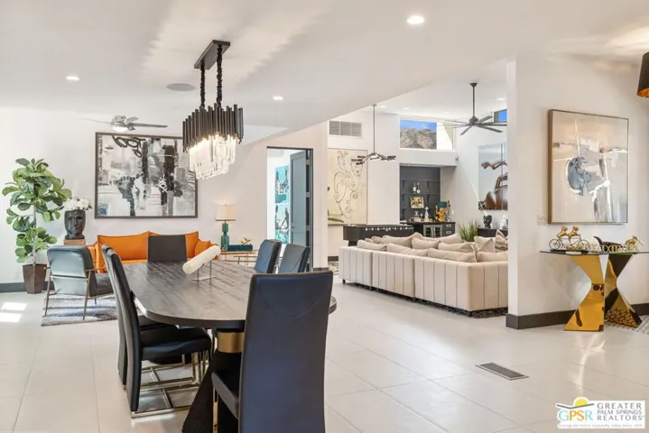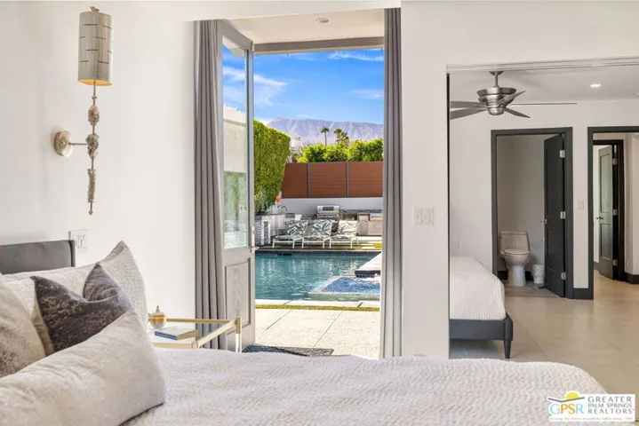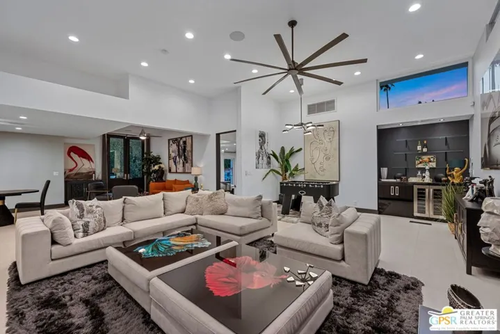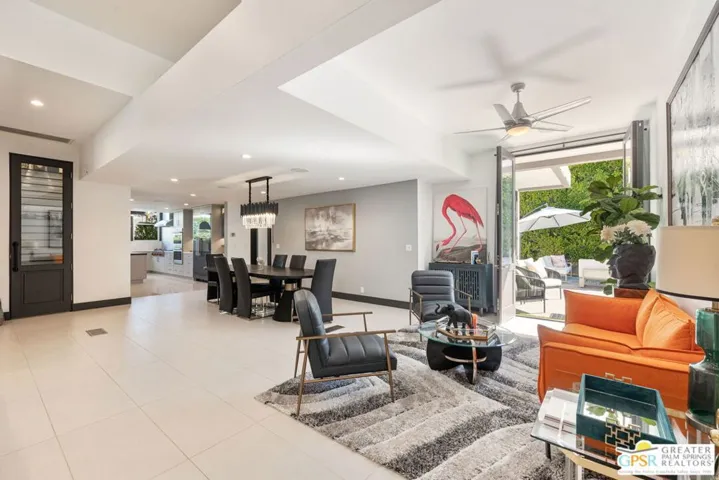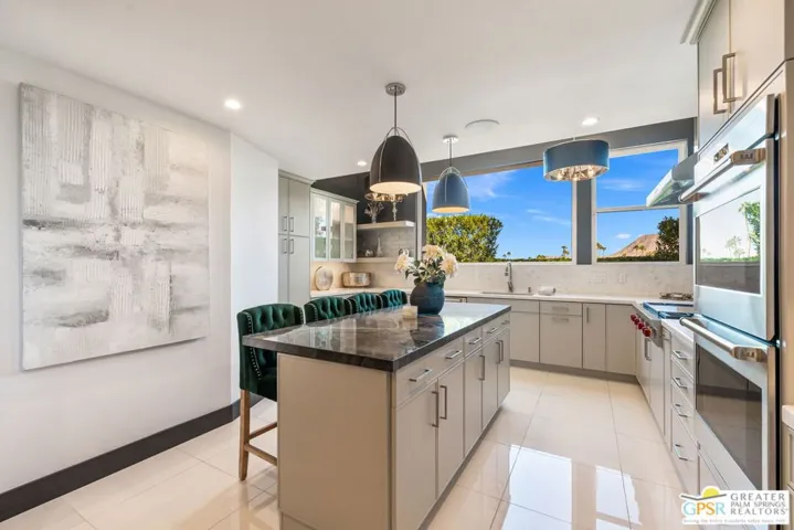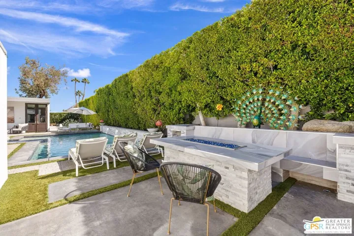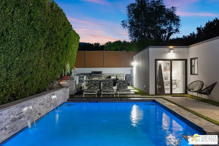 This stunning fully renovated modern home with a separate ADU is a standout in South Palm Desert. Originally built in 1979 and fully remodeled in 2020, the property offers an open-concept design with soaring ceilings, sleek tile floors, and designer finishes throughout. The chef’s kitchen is outfitted with Wolf 48″ range top, Wolf double ovens, Thermador range hood, Miele tower refrigerator and freezer, Miele dishwasher, Sharp drawer microwave, Insignia dual zone wine and beverage center, and Samsung washer and dryer. The main living areas open seamlessly to the backyard through new Milgard dual pane windows and Sierra Pacific dual pane doors, creating the ideal indoor-outdoor lifestyle. The attached ADU features its own full kitchen, walk-in custom closet, mini-split A/C, and walk-in tile shower. The primary suite boasts two large custom Closet World walk-in closets, designer bath fixtures, Toto toilets, a separate Toto bidet, and Emtek marble door hardware. Additional upgrades include a Lennox condenser and Anthem HVAC system, upgraded 220 electrical panel, two Vesta tankless water heaters, Ring and Vivint integrated smart alarm systems with fire and CO monitoring, and the home is fully wired for surround sound. Outside, the resort-style backyard is designed for entertaining with a custom gourmet outdoor kitchen featuring Firemagic BBQ with rotisserie, BBQ Galore refrigerator, ice and beverage station, wok cooking station, sink with hot and cold water, custom seating, tiled prep areas, and a rectangle fire feature table. The saltwater pool and spa include a Pentair system, heater, three waterfalls, and two fire bowls, surrounded by lush desert landscaping, drip irrigation, and ample privacy. Additional amenities include a three-hole putting green, multiple seating and sunning areas, RV parking pad with hookups behind custom gates, driveway lighting, landscape lighting, and full sensor/flood lighting. This home offers a two-car garage, additional driveway and boat parking, mountain views, no HOA fees, and is short-term rental eligible. Please note for short-term rentals, the home must be owner occupied. You can either reside in the main house and rent out the casita, or stay in the casita and rent out the main house. Perfectly located near El Paseo dining, shopping, and golf, this move-in-ready modern retreat represents the best of Palm Desert living. Turnkey option: furnishings may be purchased separately, outside of escrow.