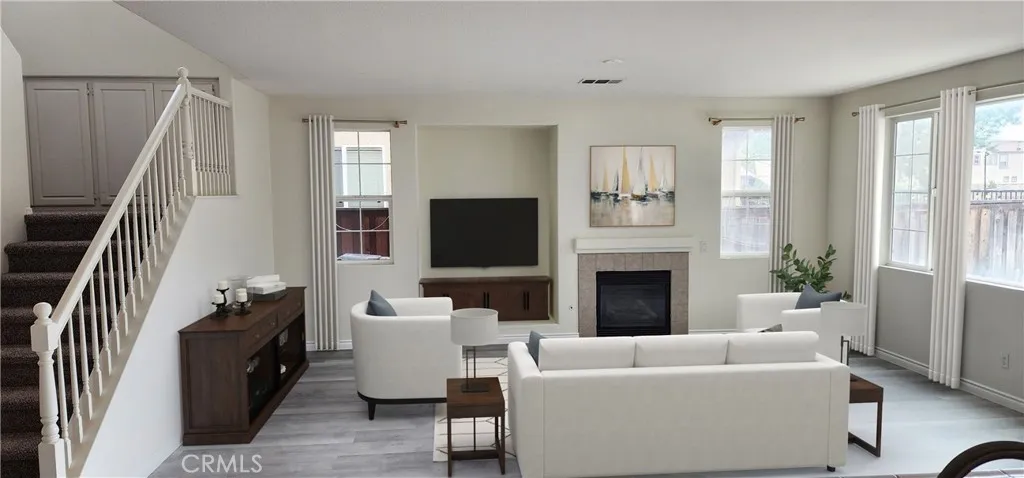 Reduced. Beautifully updated two level contemporary style home with beautiful lake view, in the gated community of Willowalk. At 2808 sq ft with 4 bedrooms and 2.5 bathrooms, this home offers an open floor plan with high ceilings and a fireplace that create an inviting living space. At the front covered porch, the front door opens to a living room and dining room. The center hall leads to the family room and the open kitchen with ample built in cabinets, breakfast area, a center island and breakfast bar area, with beautiful lake view beyond. There is a 1/2 bath and laundry room on the first floor, with direct access to the two car garage. A staircase leads up to the second floor with a loft / flex space, 4 bedrooms and 2 bathrooms. The flex space can be utilized as a loft or TV use. There is a study nook off to the side. The primary bedroom offers a spacious walk in closet, a water closet, double sink vanity, a tub and a shower. Lake view can be enjoyed from the primary bedroom windows. New updates include all new vinyl plank floors on the first floor, new carpet on the second floors except the bathrooms, and new interior paint on walls. This home is located in the middle of a small cul de sac street, with a low maintenance backyard. The Willowalk community offers a pool, spa, club house, park, playground, lakes and walking trails. With beautiful lake view and Starbucks, Walmart, Dave’s Hot Chicken across the street from the community, this stunning home offers the perfect blend of comfort and convenience. Please note that some interior photos were virtually staged.