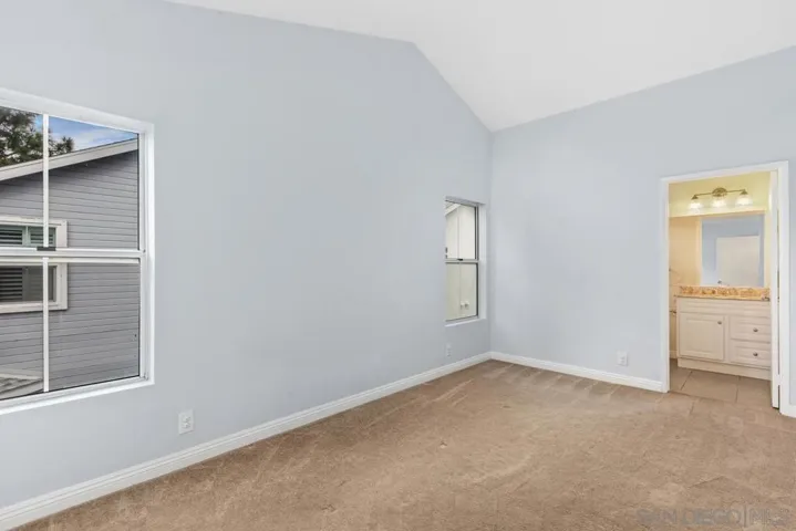 Sunny, bright, end-unit Scripps Ranch townhome with the best location in the complex. Features include upgraded cabinetry, stainless steel appliances, flooring, bathroom sinks and cabinets and more. The primary suite with private balcony and walk-in closet and a second bedroom with an en-suite bedroom are located upstairs. The third bedroom and full bathroom are downstairs. Enjoy direct-access from the large two-car garage. Re-sort style community amenities and HOA includes water and trash. Close to top-rated schools, dinning and shopping.