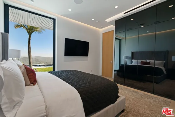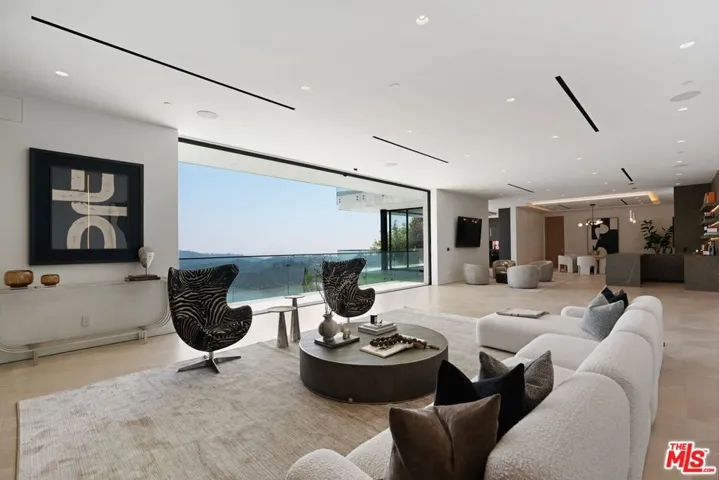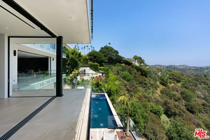 Immaculate contemporary new construction offering breathtaking panoramic views of the reservoir and Downtown LA. The impeccable quality of finishes and thoughtfully crafted design elements throughout accentuate the setting and the picturesque vistas. Enter into an expansive, open-plan living room with soaring ceilings, where large glass walls and doors seamlessly open to blend the interior with the stunning natural surroundings. The main level features a living room with an elegant marble wall fireplace, a family area, a formal dining room, a fully equipped kitchen, and a butler’s kitchen, all outfitted with top-of-the-line appliances, as well as a guest bedroom. On the upper level, the primary suite awaits, complete with a large wraparound terrace that overhangs the breathtaking vistas, a marble fireplace, generously sized dual luxurious closets, and bathrooms adorned with the finest stone finishes. The north wing of this level houses three additional bedrooms, each with en-suite bathrooms, along with an upstairs laundry room.Take the elevator down to the lower level, where you’ll find a state-of-the-art movie theater, an entertainment area featuring a large bar and a temperature-controlled wine wall, a gym, and two additional bedrooms. Floor-to-ceiling, automatic pocketing doors open to an outdoor kitchen and dining area, complemented by a stunning pool, spa, and yard that overlooks the reservoir.This is a rare opportunity to acquire a premier piece of real estate in Bel Air, offering unparalleled views and exceptional craftsmanship on an expansive lot of over an acre.