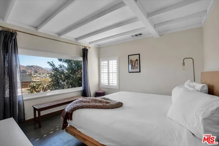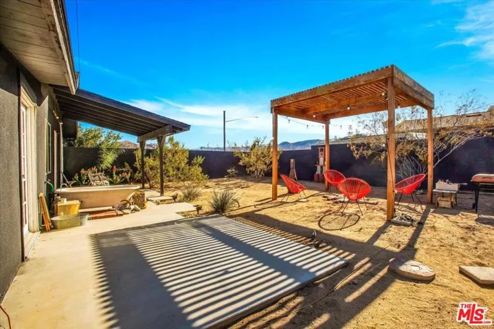 Perched in the foothills of Downtown Joshua Tree, this special desert compound offers 2 bedrooms and 1.5 baths, a large bonus room off the kitchen, and private outdoor spaces to relax and entertain on a spacious 0.33-acre lot. This 1,368 sq. ft. home was lovingly updated in 2019, transforming it into a serene desert retreat to escape the buzz of the city. The open-concept kitchen provides ample space for prepping delicious dinners with produce sourced from the weekend farmers market down the street. Enjoy multiple outdoor zones: a courtyard with a hot tub under the stars anchored by a mature Palo Verde tree, a covered patio off the guest bedroom overlooking native creosote bushes, and a hammock platform with mountain views. On chilly desert winter days, cozy up to the living room fireplace or walk to the vibrant Downtown Joshua Tree strip to grab a coffee or bite to eat. Easily pop into the National Park for a sunset atop a pile of boulders, venture to Pappy’s for a concert in Pioneertown, or drop in to the Tiny Pony for some beers- you’re a local now!