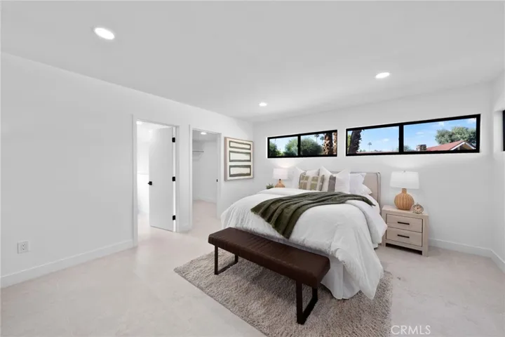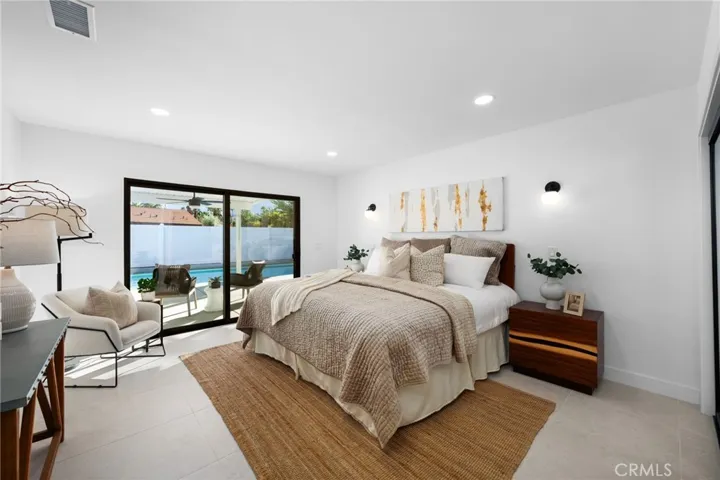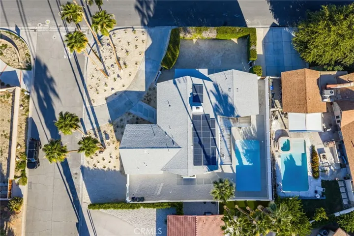 This 1959 mid century newly designed home in sought-after South Palm Springs is waiting for its new owners after being transformed! Enter through the wood front door and enter your large living room with fireplace, high ceilings, and aluminum bi-fold doors across the back of the living room leading you to the backyard where you will be greeted with a fully remodeled pool, backyard, and large covered patio to enjoy the outdoors and mountain views. Off the pool area is a large primary suite with a large walk in closet, a primary bathroom offering a curbless walk in shower, and separate soaking tub. On the other side of the home you will have the privacy of 3 additional bedrooms including one more primary suite with a walk in closet and curbless entry shower. The kitchen boast of frameless soft close cabinets, quartz countertops, and Z Line appliances. The home offers tons of natural light through the new construction aluminum double pane windows. The main home offers a powder room for guest and an additional bathroom with curbless shower for the additional guest and bedrooms. A private separate laundry room. This home combines mid century bones with updated organic modern design and earthy tones. The home offers Tesla paid off Solar, No land lease, privacy of a corner lot on a cul-de-sac, new roof, new HVAC, new plumbing, new electrical, new landscape and sprinklers, and so much more. Just minutes from downtown Palm Springs, Shopping, and Dining. Make this home a permanent residence, secondary home, or rental. Don’t miss this opportunity to own this modern gem.