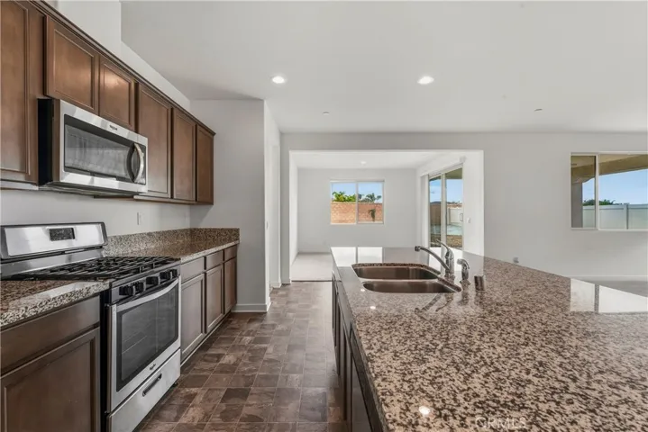 Premium Lot • California Room • Solar • Move-In Ready. Discover exceptional single-story living in the highly desirable Banner Park community in Menifee! This is a desirable community with walking trails and parks. This well-maintained single-story Pulte home offers 2,460 sq ft of living space on a premium 9,700+ sq ft lot. Built in 2021, the property features 3 spacious bedrooms, 2.5 bathrooms, a versatile den (ideal for a home office or optional 4th bedroom), and a tandem 3-car garage providing additional storage or flex space options. The open-concept layout includes a large kitchen with granite countertops, stainless steel appliances, a walk-in pantry, and a center island with a breakfast bar. The adjoining great room is filled with natural light and connects to a covered California room equipped with lighting and a ceiling fan—perfect for outdoor enjoyment. The front and backyard are fully hardscaped for low maintenance, with ample space for a pool, garden, or additional outdoor features of your choice. The home also includes a leased solar system for potential energy savings. Situated on a cul-de-sac and surrounded by other newer homes, this property is move-in ready and offers a spacious layout with modern finishes. Nearby Pulte new construction homes are competitively priced and offer incentives; however, this home offers immediate occupancy, a larger layout, premium large lot, and completed upgrades already in place. Schedule your showing today and experience what premium California living feels like.Close to the 215 fwy, shopping, restaurants, Menifee Town Center, minutes from Diamond Valley Lake, local schools and great parks.This one checks all the boxes: space, style, efficiency, and future potential! See You Soon!