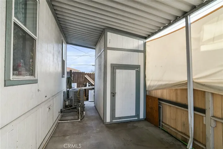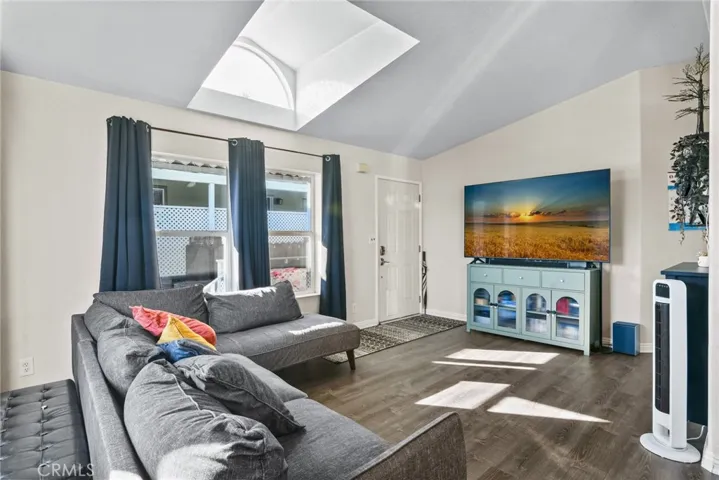 This move-in ready, turnkey 3-bedroom, 2-bath manufactured home in El Rancho Verde Mobile Home Park offers just under 1,200 sq. ft. of comfortable living space. The open floor plan welcomes you with cathedral vaulted ceilings, newer vinyl flooring throughout, fresh interior paint, and accent attached furniture — great for storage, a coffee area, or bar setup. The spacious primary bedroom features its own en-suite bath, while the additional bedrooms are generously sized — perfect for family, guests, or a home office. Enjoy relaxing on the lovely front porch or in the private, low maintenance hardscaped yard — ideal for outdoor gatherings or quiet evenings. Additional highlights include a 2-car covered carport, storage shed, central air and heat, laundry area in kitchen and a beautifully manicured front area. Located in El Rancho Verde, a vibrant all-ages, rent-controlled community offering resort-style amenities such as a pool, clubhouse, billiards room, BBQ area, and more! Conveniently located near parks, schools, shopping, restaurants, and freeway access — this home is ready for its new owners to move in and start making memories!
