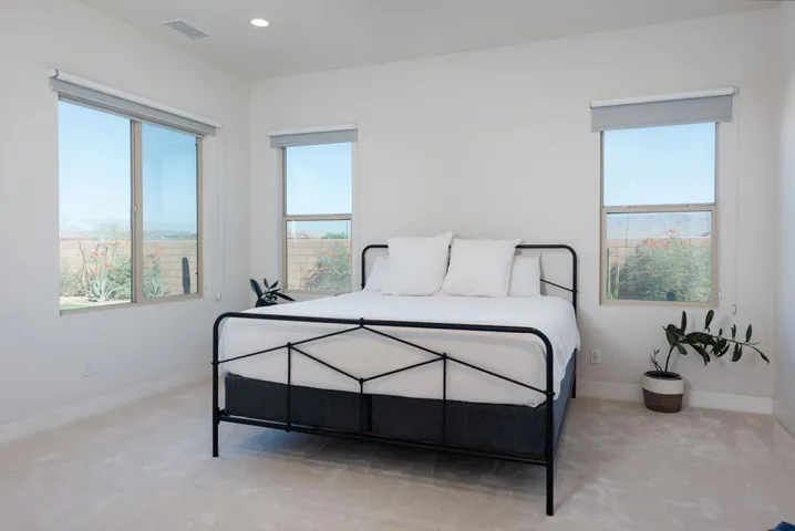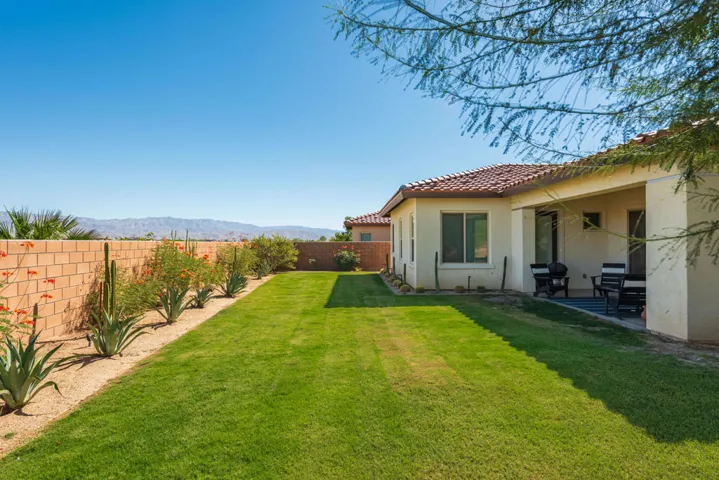 Welcome to Genesis in Palm Desert – modern living in a private, gated community built by award-winning local builder. This beautifully upgraded 3 Bed/3 Bath home sits on a desirable corner lot and offers 2,467 sq. ft. of light-filled living space. The open-concept kitchen is designed for both style and function, featuring stainless steel appliances, a center island, abundant cabinetry, and a designer tile backsplash. The spacious great room flows seamlessly to the large backyard, where you’ll enjoy great views and low-maintenance landscaping–perfect for entertaining or relaxing outdoors. The primary ensuite offers a luxurious retreat with an oversized walk-in tiled shower, dual vanities, and a generous walk-in closet. A secondary bedroom and full bath provide comfort for family or guests, while a separate laundry room, and 2-car garage add everyday convenience. Genesis residents enjoy resort-style amenities, including a sparkling pool, spa, fitness center, BBQ area, outdoor showers, dog parks, and scenic walking trails–all with low HOA dues that includes front yard maintenance, direct tv and internet. With its central location near shopping, dining, Acrisure Arena, and quick I-10 access, this home offers the perfect balance of comfort, lifestyle, and convenience. This home will a make great getaway! Call now for a showing.