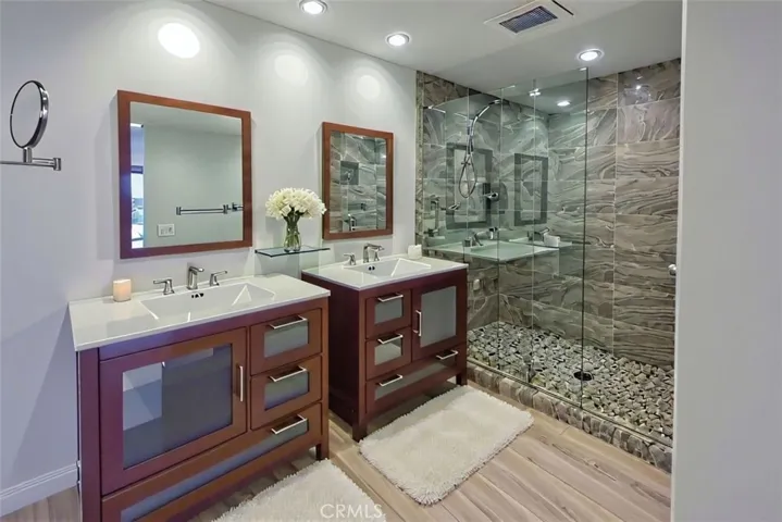 A three-car garage with parking for up to nine vehicles, private gated entry, and low-maintenance, drought-tolerant landscaping complete this exceptional offering.