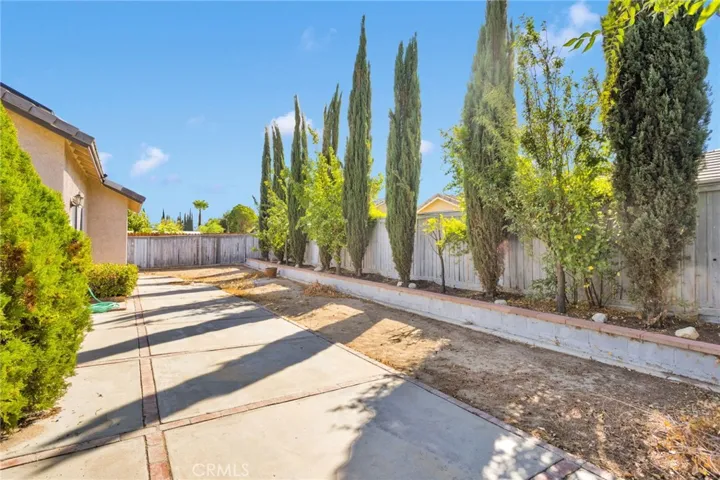 Private backyard with mature fruit trees, ideal for outdoor enjoyment and relaxation.
