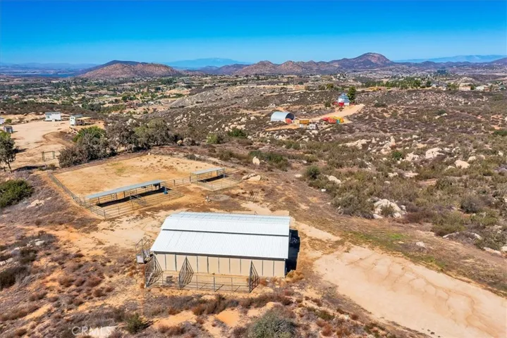 A custom home in the Temecula wine country. Property has a Main home, a detached guest house, a large detached garage-workshop, and a barn with corrals all on 10 acres of land! Located above the highly desirable Glenoaks Hills area in the heart of the Temecula wine country. Ten acres with 360 degree views of Lake Skinner and the wine country and city lights! Enter the main home into a spacious living room with a bank of windows to take in the fantastic views. Your gaze will be drawn to the spiral staircase leading to the upstairs huge 4th bedroom/office. The sunny and bright kitchen with custom cabinetry and granite counters, and large island with seating, and a pantry offers plenty of storage space. The outdoor covered patio welcomes you to relax and enjoy the view and watch the hot air balloons glide overhead. The private Guest house, Casita with its separate entrance offers an open concept floorplan with kitchenette and full bath. The combined living area for the home and casita totals over 2500 sqft! A detached garage has been drywalled and the workshop floor sealed with epoxy, perfect for a pool table or hobby game room, leaving the remaining bay space available for parking, and access to the attached laundry room. Additionally, there is an office room with a private entrance attached to the garage. The horse facilities include a 36X48 barn with in and out stalls with welded wire panels, with large open span area for tractor parking, tack or hay storage. There are additional turnouts with covered corrals. The twenty solar panels are seller owned. There are two permitted wells that are not in use as property is connected to municipal water source. Water bond has been paid in full. Low taxes! Property split potential.