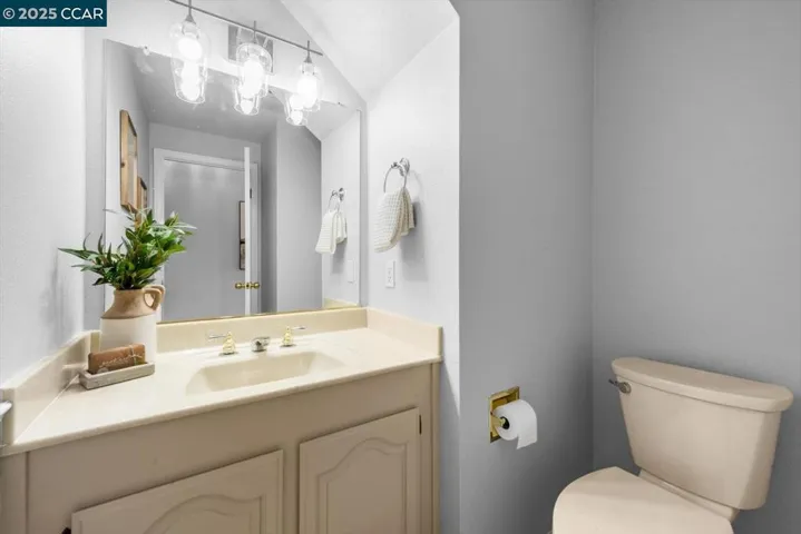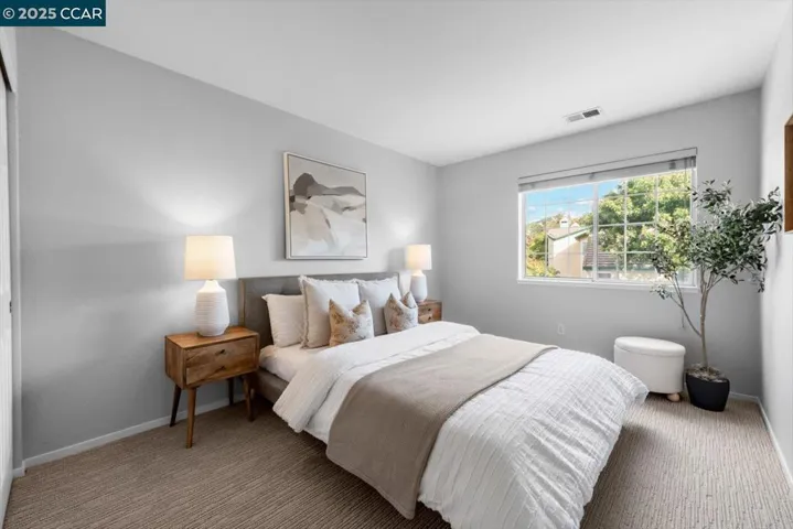 A charming two-story townhouse in Clayton’s sought-after Chaparral Springs. With 3 beds, 2.5 baths and 1,367 sq ft, it’s designed for easy living. Enjoy a tranquil setting just minutes from Oakhurst Country Club, scenic trails and downtown Clayton. A marble-tiled entry opens to a bright living and dining area where sunlight and a two-way marble-tiled fireplace create inviting warmth. Sleek, high-quality laminate flooring connects the spaces and a sliding door leads to a low-maintenance yard with redwood decking, a retractable Sunsetter awning, and a stone patio overlooking the Oakhurst golf course and Mt. Diablo State Park for sunsets. The kitchen offers tiled floors, updated appliances, and a breakfast bar, with laundry and a half bath nearby. Upstairs, high-quality durable carpet spans an airy mezzanine landing. The primary suite features diamond-peaked vaulted ceilings, a mirrored closet, and an ensuite with dual vanities, while two additional bedrooms share a hall bath. The attached garage includes built-in shelving, a workbench, and loft storage. Recent updates include a premium HVAC system, water heater, and Andersen thermally protected west-facing windows. Chaparral Springs residents enjoy a pool, greenbelts and maintenance. Close to downtown restaurants, shops, and trails
