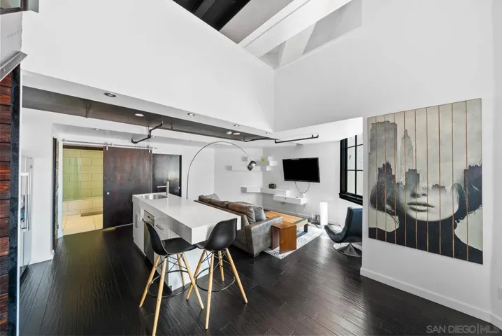 Rare & stylish bachelor(ette) loft featuring striking 20-foot ceilings & an outdoor patio. Don’t be discouraged by monthly HOA. The current owner is paying only $2,200 ANNUALLY* in property taxes because of Mills Act Historic designation. Private entrance accessible from 1st floor of building, NO elevator needed! Step through elegant French doors into an expansive, sunlit open space with soaring ceilings, exposed beams, and an urban NYC loft ambiance ideal for art displays. The main level offers beautiful natural wood floors, a modern kitchen with island, spacious living area, full guest bath, and walk-in storage. Upstairs, the loft includes a roomy bedroom, dedicated office area, walk-in closet, and second full bath. Outside, relax on your private patio nestled among jacarandas with views of the city skyline. Perched 175 feet above sea level, the iconic El Cortez is a San Diego Historical Landmark listed on the National Register of Historic Places. Originally built in 1927, it has hosted notable guests like Eisenhower and Elvis Presley. Set in tranquil Cortez Hill, you’re close to Petco Park, Gaslamp, Little Italy, and Balboa Park. Amenities include parking, fitness center, pool, and EV chargers. Visit this exceptional home today—Carpe Diem! *Mills Act property tax amount subject to annual assessment.
