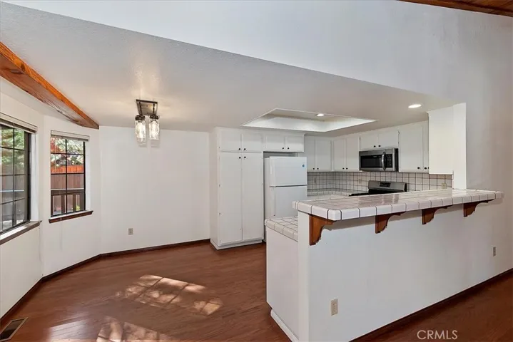 Step inside to a bright and inviting living room with vaulted tongue-and-groove wood ceilings and a skylight that fills the space with natural light. The kitchen features a cozy bay window and dining area—perfect for family meals, or hosting friends after a day on the slopes.