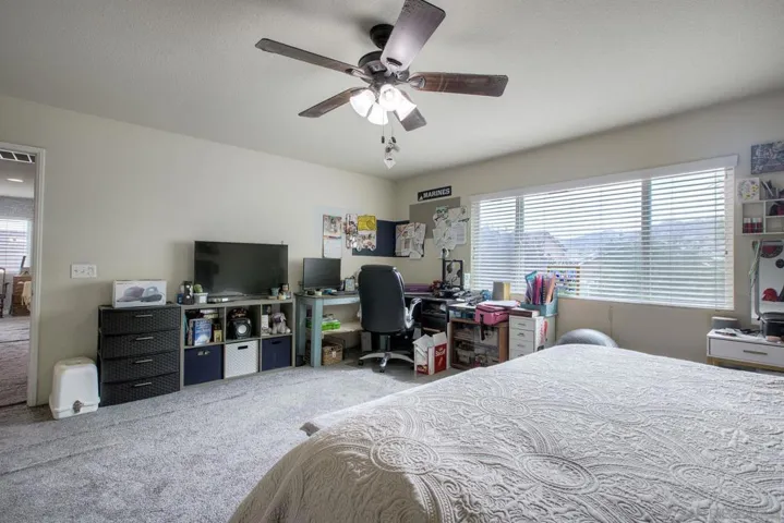 Welcome to the newest offering in Audie Murphy Ranch. Located on a small cul de sac, this 5 bedroom, 3 bathroom home has an open floor plan with great room, office and bedroom + bathroom on the first level and the primary bedroom with ensuite complete with separate shower and bathtub and large walk-in closet plus 3 auxiliary bedrooms, 2 bathrooms and laundry room on the second level. Situated on a pie shaped lot, this property offers a low maintenance front yard and a vinyl fenced-in spacious backyard with room for a pool or more and a large covered patio for meals al fresco or entertaining. Awaiting your personal touch!