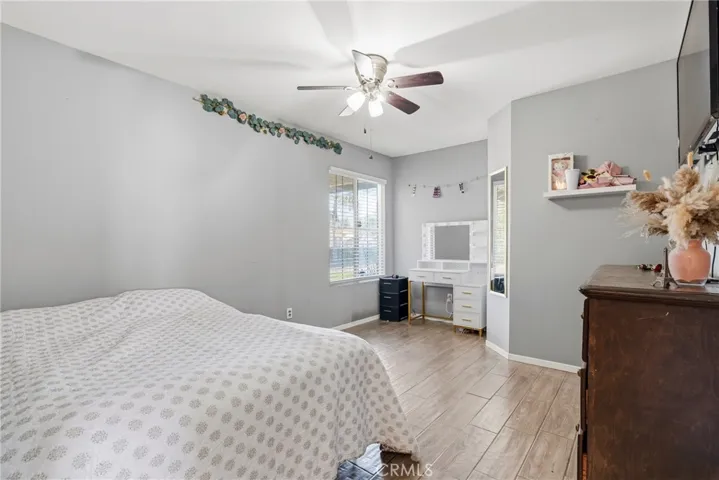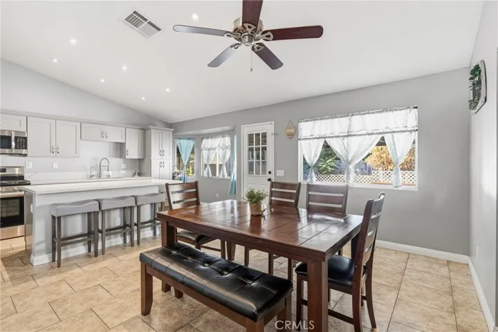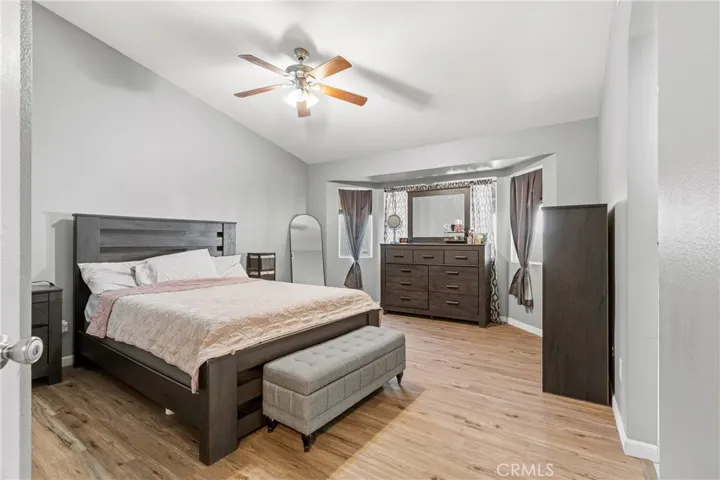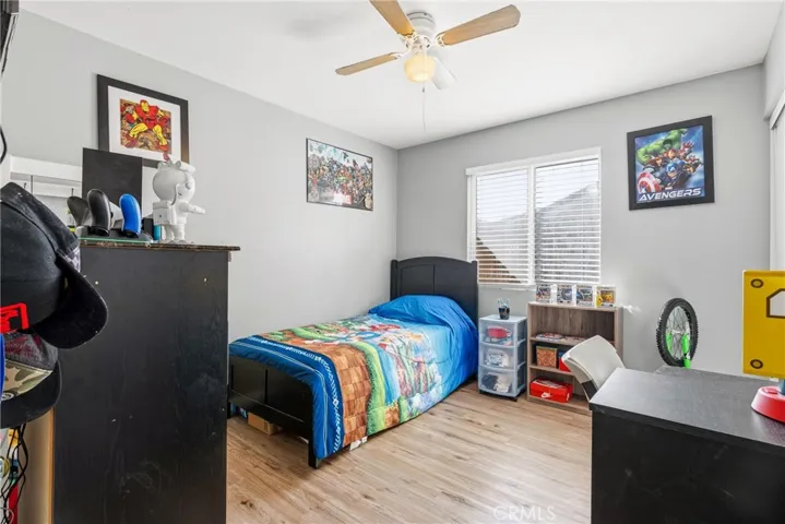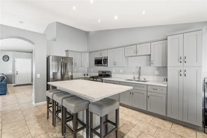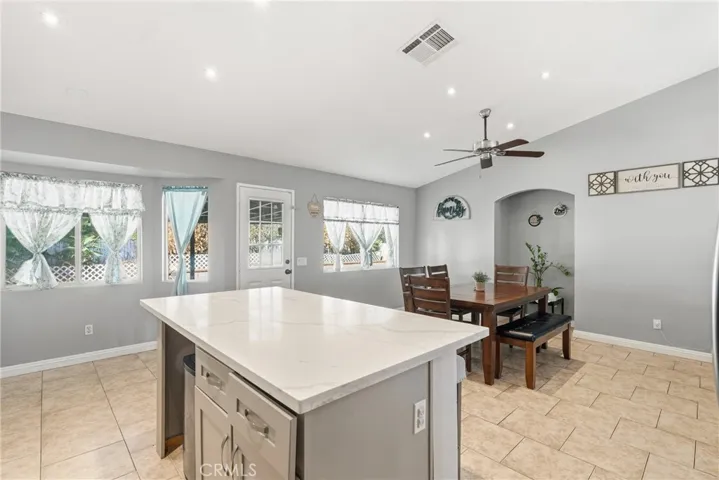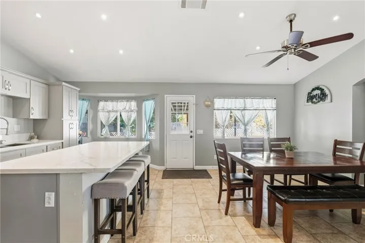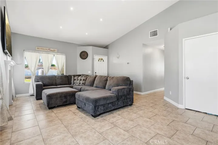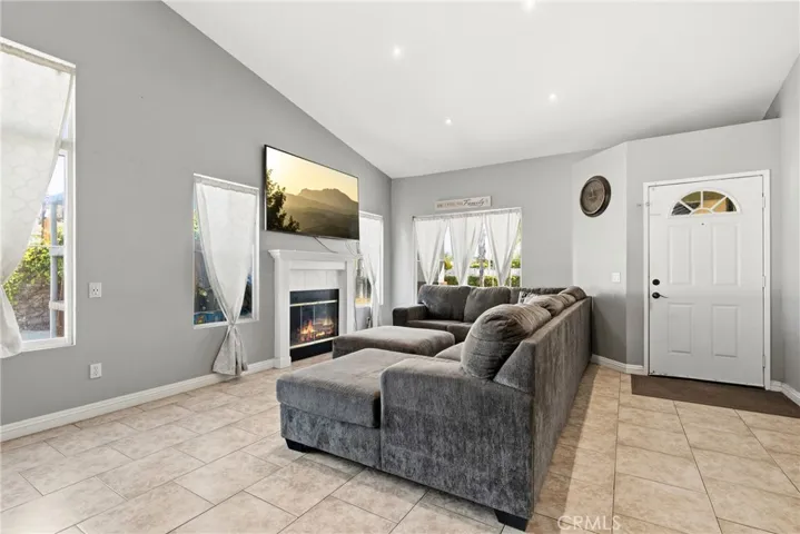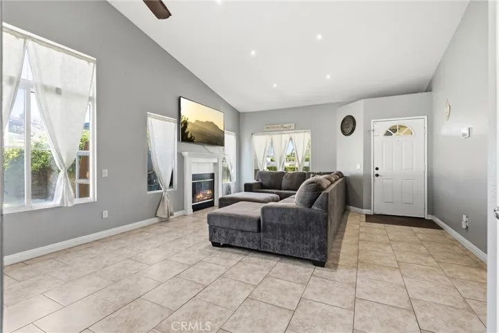 This beautifully maintained 4-bedroom, 2-bath home (plus bonus room) offers comfortable living space on a spacious corner lot. Step inside to vaulted ceilings, an open-concept layout, and abundant natural light. The renovated kitchen features quartz countertops, modern cabinetry, and a large island perfect for family gatherings and entertaining. The living area’s cozy fireplace adds warmth and charm, while the separate laundry room with built-in shelving provides convenience and storage. The attached garage has been converted into a bonus room (not permitted) with a separate side-door entrance, offering flexible use as an office, gym, or playroom- Can be reverted back to two car garage before close of escrow. Enjoy lower electric bills with fully paid-off solar panels -no lease or loan to assume. Additional features include central A/C and heating, ceiling fans throughout, waterproof vinyl plank flooring in the bedrooms, and recent interior and exterior paint. The gated yard offers privacy and plenty of space for entertaining, gardening, or relaxing. Located near schools, shopping, and freeway access, this home is a true Fontana gem that combines comfort, value, and energy efficiency.