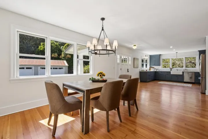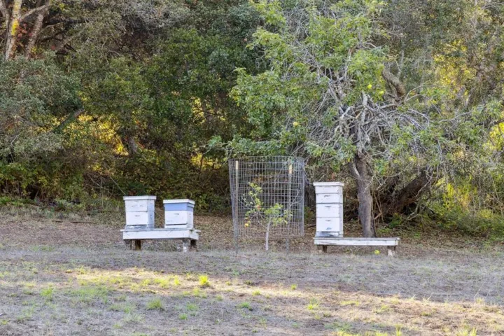 Discover this enchanting property along a peaceful country lane, cherished by only two families since 1927. Lovingly updated, it blends historical charm with modern comforts. The heart of the home features a kitchen with a classic Wedgewood stove, flowing into a spacious dining area and extending outdoors to a patio with an outdoor kitchenperfect for enjoying the Mediterranean climate. Inside, the living room is a cozy retreat with a wood-burning stove and fir floors. The expansive downstairs primary bedroom, filled with natural light, includes a clawfoot tub and opens to a large covered deck for peaceful moments. A second bedroom and full bath are on the main level, while the upper floor offers three more bedrooms and two full baths, all with warm wood floors and ample storage. Leaded glass windows create enchanting light play throughout. The property is adorned with redwoods, legacy oaks, and gardens bursting with seasonal blooms, fruits, and vegetables, supported by bee boxes. Amenities include a spacious four-car garage, a workshop, and storage areas with conversion potential, alongside a double chicken coop and olive orchard with five Italian varietals. Spanning 10+ acres, this property offers serene living and an ideal lifestyle near Aptos, Monterey Bay, & Silicon Valley.