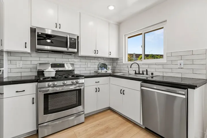 Live where charm, character, and convenience meet—right in the heart of Old Towne Orange. Tucked inside the New Orleans–inspired enclave of Park Orleans, this upper-level corner condo delivers privacy and personality. Just behind your home, a smart-opener garage offers easy access and modern practicality. Step inside and be surprised by how spacious a two-bedroom condo can feel. Updated flooring and fresh paint flow through an airy living area—perfect for cozy nights in, morning coffee by the picture window, or dinner parties that spill onto your private deck framed by lush green space and classic wrought-iron details. The refreshed kitchen features painted cabinetry (with pantry), subway-tile backsplash, new stainless-steel appliances, new hardware and faucet, plus a convenient ceiling light & fan. Built-ins in the hallway and an updated bathroom with a stone tile & glass enclosure shower/tub combo offer both function and style. Two serene bedrooms feature ceiling fans, chair rail, and soft window coverings in the larger room, making the home feel warm and truly livable. Smart updates include a new Wi-Fi-enabled wall A/C and heat unit, replaced panes in the Milgard windows, newer flooring, and fresh paint throughout. Park Orleans residents enjoy a sparkling pool, manicured grounds, and HOA-covered water, trash, sewer, and landscaping—plus the option to apply for a second parking spot permit. From here, stroll to Hart Park’s concerts and trails, the fun shops and cafés of the Plaza, or your favorite craft brewery around the corner. Whether you’re starting out, scaling down, or simply seeking low-maintenance living with timeless Old Towne character, 660 S Glassell St #80 is ready to welcome you home.