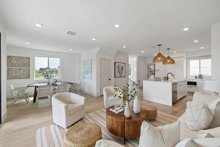 NEW construction, 2 blocks to Tamarack Beach! Experience coastal luxury at The Currents—a brand-new enclave of nine modern townhomes just steps from Carlsbad’s sunlit Tamarack Beach. Nestled on Chinquapin Avenue, this exclusive community seamlessly blends contemporary design with timeless seaside charm. 322 Chinquapin is a corner-unit residence set down a private driveway offering 4 bedrooms, 3.5 baths, and 2,265 sq. ft. of thoughtfully crafted living space. Designed for effortless indoor-outdoor living, the home features a private fenced yard, two breezy decks, and an open-concept layout that invites natural light throughout. High-end finishes define the interiors: a chef’s kitchen with Wolf and SubZero appliances, quartz countertops, and an oversized island; stylish LVP flooring; designer-selected tile, lighting, and hardware; plus Delta and Kohler plumbing fixtures. The great room extends seamlessly to a deck via stacking Western doors, while the primary suite offers a spa-like bath, expansive walk-in closet, and private deck retreat. Additional highlights include a first-floor guest suite, third-floor laundry, abundant storage, and an attached two-car garage. Smart, sustainable features—owned solar and integrated home technology—enhance convenience and efficiency. Outdoors, the fenced yard is complete with a paver patio and low-maintenance turf. Ideally situated two blocks from Tamarack Beach, steps from the Agua Hedionda Lagoon, and within walking distance to downtown Carlsbad Village, The Currents offers an unparalleled lifestyle. From morning runs along the coastline to sunset strolls through the Village, this is more than a home—it’s your gateway to coastal adventure and laid-back luxury living. Photos and video tour are of the model home, interior finishes and floor plan are the same.