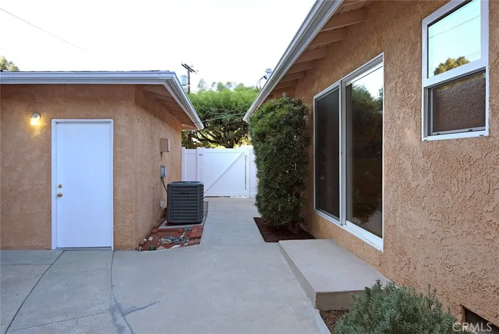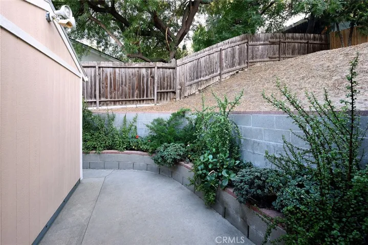The grounds follow a low-maintenance xeriscape of decomposed granite, river stone, and succulents, with a retaining wall leading to undeveloped hillside in the back yard. Upgrades include L-copper plumbing, seismic retrofit, Cat-5 cabling, tankless water heater, central air, and security system.