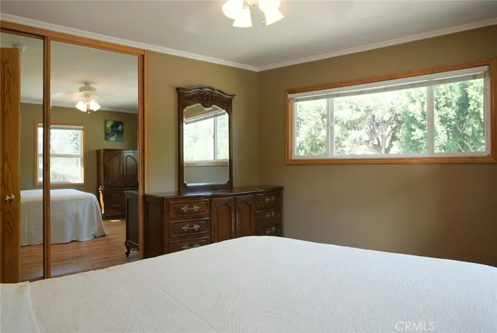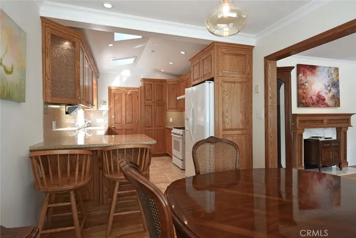 — Light hardwood floors and dual-pane windows create a calm, continuous interior anchored by a gourmet kitchen finished in speckled granite with solid-oak cabinetry and pullout shelving. Lighting comes from five controllable sources: dimmable hidden rope lighting, task lighting over sink and display cabinets, under-counter perimeter lights, ceiling fixtures, and a spotlight above the granite breakfast counter. An ornamental glass door separates the entertainment area from the private wing.