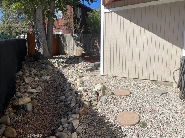 The yard is landscaped with gravel, cement, and a lovely rock faux streambed, which means little to no maintenance. The front parkway features some lovely, low-maintenance trees. The right side of the house has a cement driveway with a shelter to protect an extra vehicle.