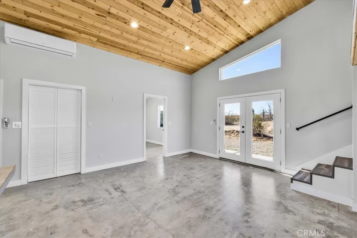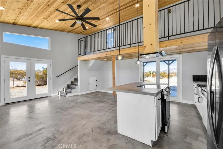 Totally Remodeled Luxury Desert Home! This extraordinary work of art was meticulously designed and renovated using some of the most beautiful finishes you could dream up and is a permitted Short Term Rental! Pulling up to the massive 5 acre lot you’ll get a sense of relief as the stresses of the city disappear and you find yourself surrounded by vast open desert landscape and stunning blue skies! As you approach the home you’ll be taken back by it’s modern charm and gorgeous aesthetic featuring a smooth stucco finish with modern paint scheme. Once inside you won’t want to leave as you’re greeted by an amazing open concept floor plan with high wood treated ceilings, recessed lighting, modern light fixtures, and an abundance of natural light coming from the dual pane windows, thus creating an open and airy feeling. Polished concrete floors flow throughout this one of a kind property which is ideal for day to day cleaning. The kitchen is an entertainer’s dream! Opening up to the living area so you can prepare your favorite meals while still being a part of the action! Fully equipped with custom concrete countertops, brand new cabinets, large black metal sink, tasteful shelving, and stainless steel appliances, you’ll want for nothing! The bedroom is well sized for the floor plan and includes recessed lighting, mini split, window with view, and tasteful wardrobe! Stepping into the bathroom you find a beautiful walk in shower, modern vanity, touch screen mirror, claw foot bathtub, and tasteful tiled walls! Enjoy the loft as a reading area, office space, or sitting space! Just off the loft you find a relaxing balcony with a view that goes on for miles! It gets even better! Once back outside, relax under the covered patio taking in a soft desert breeze, or take a dip in the cowboy tub as you gaze at the star filled skies! There is just too much to list with this one so call today before it’s gone!