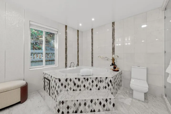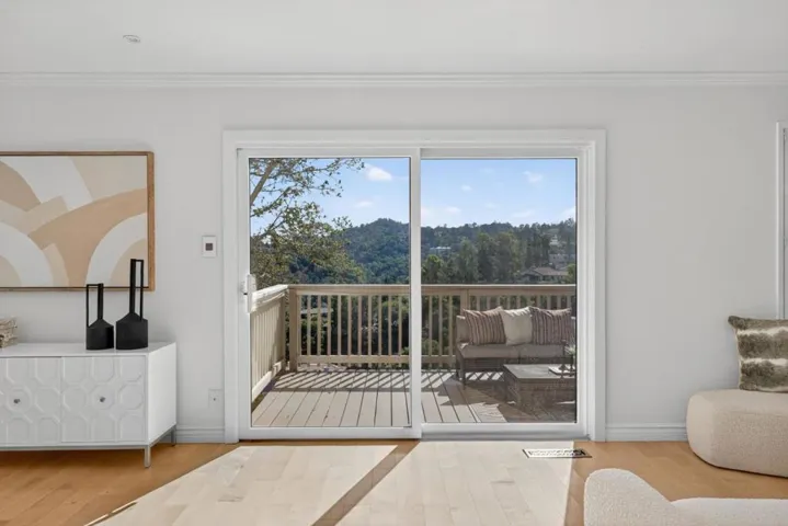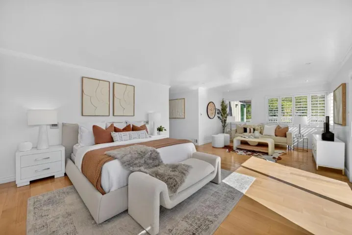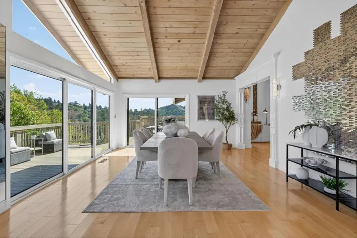 Perched in the prestigious Lakeview neighborhood of Hillsborough, this gated residence blends refined living with breathtaking design and panoramic views. A spacious motor court and two-car garage welcome you to a home of distinction. Step into the elegant foyer, where classic columns frame a soaring open-concept living area. Vaulted ceilings with exposed beams and floor-to-ceiling windows flood the space with natural light and showcase sweeping vistas. The expansive living room features a dramatic stone fireplace and flows into a chefs kitchen with high-end stainless steel appliances, tray ceiling, and a generous breakfast barperfect for everyday living and entertaining. This four-bedroom home includes a luxurious primary suite with a private sitting area and spa-inspired bath, complete with soaking tub, frameless glass shower, and double vanity. Located in the serene Lakeview area near top-rated schools, boutique shopping, and dining, with easy access to Hwy 280, 101, SF, Silicon Valley, and SFO. The land has potential for subdivision, subject to city approval.