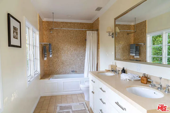 Designed in 1923 by renowned architect Clarence J. Smale, this timeless Mediterranean home blends historic character with modern comfort on one of Windsor Square’s most coveted blocks. Gracefully set back from the street and framed by mature sycamores, the residence offers a rare sense of tranquility and presence.A beautiful arched entry leads to a striking foyer with black-and-white stone floors. The grand step-down living room, illuminated by two exposures, opens through French doors to the backyard. A charming library/office enjoys its own private patio, while the formal dining room – with garden views- doubles as a welcoming family space. The den, opening to the backyard, functions equally well as a breakfast room or cozy retreat.The chef’s kitchen is updated with a large honed marble island, generous pantry (formerly a bedroom), laundry room, and adjacent full bath. A stylish powder room completes the first floor. Upstairs, the primary suite offers elegance and serenity with a stone fireplace, private terrace, remodeled bath, generous walk-in closet, and separate office or dressing area. Two additional ensuite bedrooms line a light-filled hallway. An entertainer’s dream backyard is hedged in and private with a pool, spa and outdoor kitchen. Above the detached two-car garage, a flexible guest suite/gym/office includes its own bath. A rooftop deck crowns the space, offering unexpected views of Griffith Observatory and the Hollywood Hills. Located in the 3rd St elementary school district, moments from Larchmont Village’s Farmers Market, beloved restaurants, shops and yoga studio, this home captures the perfect balance of architectural romance and urban sophistication in a close-knit community.