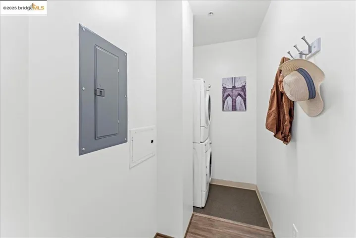 This light-filled, corner, one-bedroom, one-bath condo blends industrial-chic design with residential charm. Windows facing east and south fill the space with natural light and offer downtown skyline views, while a secured parking spot with an EV charger adds everyday convenience. The well-kept Pacific Cannery community offers lush courtyards, modern loft-style designs, and thoughtful amenities, including a dog-washing station! Centrally located, all major delivery services operate within the location of Unit 365, keeping daily life simple and connected. Less than a mile from BART and close to major freeways, this home offers easy access to Jack London Square, downtown, and the local restaurants and cafés that define West Oakland’s distinctive character. Views: Downtown