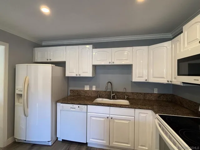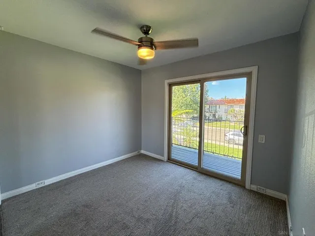 Rarely available, remodeled 4 bedroom townhouse in popular Loma Riviera! This home is in a excellent location & faces the greenery allowing a lot of natural light into the townhouse. Perfect home for indoor outdoor living, nice patio in the front, large balcony overlooking the palm trees and SeaWorld tower, and a large patio off the living room with a built in bench. Relax in the pretty living room with custom paint, new carpet and sliders to the patio. See supplement for more details on this amazing property. You will love living in this move-in-ready, beautiful, bright, remodeled townhouse! Newer dual-pane windows throughout! The large kitchen has pretty white cabinets, granite countertops and is open to the dining room with access to the front patio, perfect for a BBQ and entertaining. There is a gas line installed in the kitchen if you prefer a gas range. The spacious living room has new carpet, a fireplace, and French doors to the back patio. The bedrooms upstairs all have access to balconies! The front bedrooms have sliders to the balcony overlooking a grassy area, palm trees, and the Sea World tower, perfect for watching the fireworks. The hall bathroom has a custom-tiled shower and a large jacuzzi tub, great for relaxing! Watch the palm trees sway from the primary bedroom or enjoy your morning coffee on the balcony off the primary. There is a laundry room off the patio with full size washer/dryer and 2 carport parking spaces close by with extra storage. This awesome complex has plenty of mature landscaping, a large rec room and pool! You will love living here!