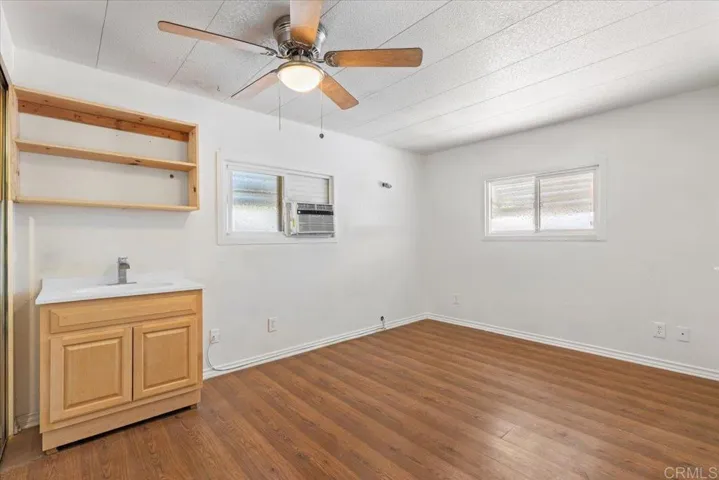 NO PROPERTY TAXES! MOVE IN READY This cute 2 Bed 2 Bath home has many upgrades. It has drywall, dual pane windows plus newer appliances and more! It has a walk-in closet and an added sink in the primary bedroom. An added bathroom in the California Room. Ceiling fan in guest bedroom. The kitchen has been remodeled. It has wood, laminate tile and carpet flooring. It has a large yard with a new fence. Close to shops, dining.