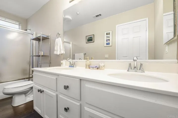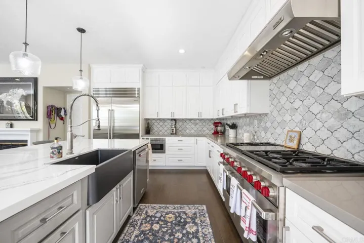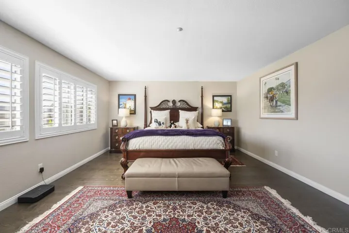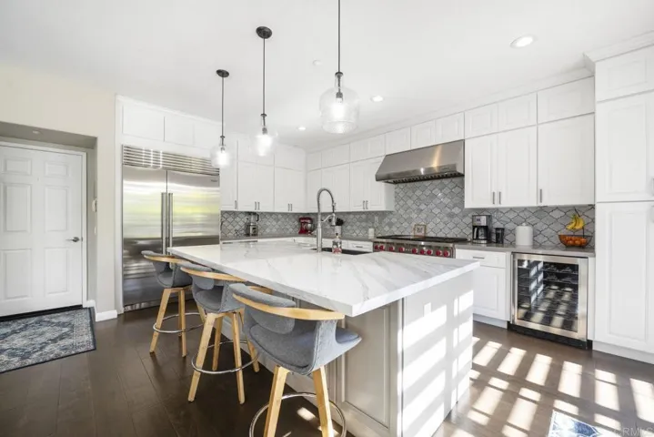 Welcome to your dream home in the heart of 4S Ranch, a highly sought after community celebrated for its family friendly atmosphere, top rated schools, and vibrant neighborhood amenities. This stunning 4 bedroom, 3 bath residence features elegant design, paid off solar, thoughtful upgrades, and a bright, open floor plan perfect for entertaining and everyday living. Step inside to discover spacious living and dining areas enhanced by beautiful flooring, designer lighting, and plantation shutters that allow natural light to fill the space. The fully upgraded gourmet kitchen is a chef’s delight with luxurious quartz countertops, Wolf appliances, a Sub Zero refrigerator, and an oversized island with pendant lighting and breakfast seating. The open concept kitchen flows seamlessly into the family room, creating the perfect setting for connection and relaxation. On the main floor, you will find a highly desirable bedroom and a beautifully remodeled full bathroom, offering exceptional flexibility for guests, multi-generational living, or a private home office. Upstairs, the spacious primary suite provides a peaceful retreat with an ensuite bath, while the well-appointed secondary bedrooms offer comfort and versatility. The loft area presents excellent potential to be converted into an additional bedroom, and the third car garage can also be transformed, allowing for up to six bedrooms total. The exterior boasts charming curb appeal with a manicured front lawn and a private backyard ideal for entertaining, gardening, or simply relaxing. Minutes from parks, top schools, shopping, dining, and freeway access. This home has it all!