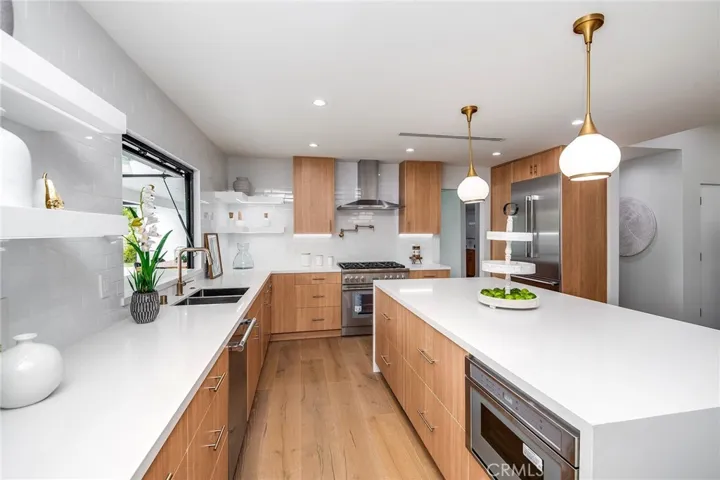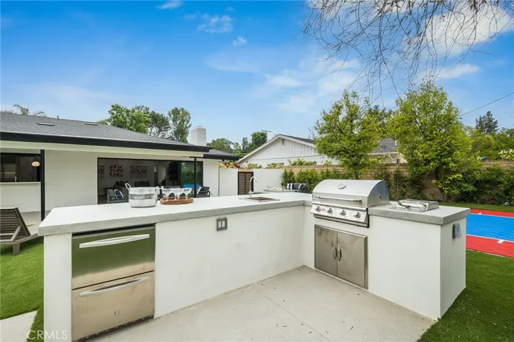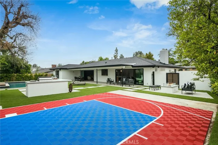 Offered fully furnished, this long or short term rental property (3 month min) offers everything desired in a luxury rental. A perfectly reimagined mid-century architectural find, found in the loveliest of neighborhoods, and appropriately situated in a peaceful cul-de-sac. Completely remodeled, yet retaining all the character and authentic feel, so difficult to find in new construction! With gracious and expansive curb appeal, and inviting front porch, this home does not disappoint, leading you into a beautifully appointed entry, with a spacious yet cozy office to your left, and the true heart of the home, the welcoming kitchen and family room, complete with original fireplace and tile. Designed for entertaining, this home features a dining room true to period with informal sitting area. All the main living areas feature sliders, opening out into the spectacular, ultra private backyard oasis, complete with sparkling pool, basketball court, fire pit area, outdoor kitchen and seating, with significant outdoor lounging and dining areas. No unchecked boxes here, this is a true family home with all of your entertainment needs exceeded.