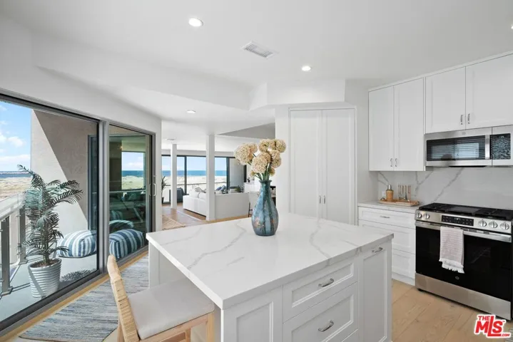 A rare opportunity to own a stunning oceanfront home in one of Marina del Rey’s most coveted beachfront buildings. Experience the ultimate in coastal luxury in this sun-drenched, newly renovated 2-bedroom, 2.5-bath south corner unit. Perfectly positioned on a prime stretch of sand, this exceptional residence offers sweeping, unobstructed ocean views from nearly every room. Thoughtfully reimagined with a modern aesthetic, the open-concept floor plan is bathed in natural light through expansive floor-to-ceiling windows and sliding glass doors that frame breathtaking vistas of the Pacific. Rich hardwood floors flow through the main living areas, which include a stylish living room with fireplace, a dedicated dining area, and a chef’s kitchen. The brand new kitchen is equipped with top-of-the-line stainless steel appliances, custom cabinetry, sleek porcelain countertops, and an oversized island perfect for cooking, casual dining and entertaining. The spacious primary suite is a tranquil retreat, featuring its own fireplace, cozy sitting area, and generous closet space. A spa-inspired primary bath includes dual vanities, a soaking tub, and a large walk-in shower. The second bedroom is well-proportioned and includes its own beautifully appointed full bath, ideal for a kid’s room, guest space, or home office. Additional highlights include a chic powder room, a separate laundry room, and a private balcony ideal for sunset-watching and ocean breezes. Situated just moments from world-class dining, shopping, and the vibrant Marina lifestyle, this rare offering combines sophisticated design, breathtaking views, and an unbeatable beachfront location.