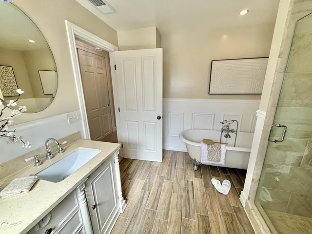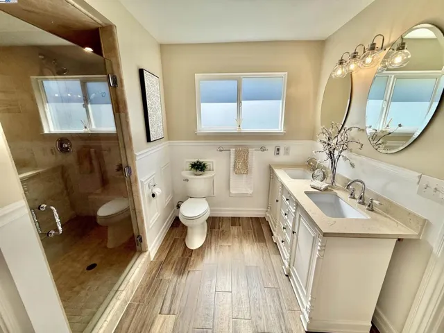 Welcome to this beautifully updated 5-bedroom, 4-bath home featuring 2 primary suites & an exceptional blend of style, comfort, & functionality. Thoughtfully designed with custom updates throughout, this spacious residence offers everything a modern family could want. Step inside to find large living & dining areas, perfect for both relaxing & entertaining. The updated kitchen & bathrooms feature quality finishes & contemporary touches, while the open layout enhances the home’s natural light & flow! Enjoy a family-friendly backyard ideal for gatherings, gardening (which includes prolific avocado, lemon & budding orange trees), play (built-in sandbox & tiered grass areas to play catch or set up play structure) & provides plenty of space to make lasting memories. Take in the delightful hillside views & the serene atmosphere of this quiet neighborhood from your front sitting porch! Yet still be conveniently located near major freeway access & minutes from surrounding cities & the coveted Chabot Park! This lovely setting offers the perfect balance of peaceful living & easy commuting. A long list of upgrades & impressive enhancements will further solidify that this is the home you won’t want to miss the opportunity to make your forever home!