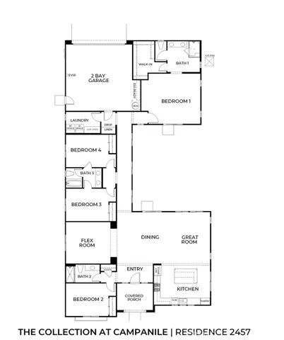 NEW CONSTRUCTION – SINGLE-FAMILY HOMES – NEW COMMUNITY! Welcome to The Collection at Campanile, a stunning, gated community located in the city of Cathedral City. The Collection at Campanile features one and two-story, single-family residences ranging from 1,913 to 2,929 sq. ft., with up to 5 bedrooms and 4 bathrooms. This Residence 2457 is single-level, desert living at its finest, offering 4 bedrooms, PLUS a Flex Space and 3 bathrooms. Enter the covered porch and open the doors to the expansive Open-Concept, Dining and Great Room space, which leads to a large and open Kitchen perfect for entertaining. The gourmet Kitchen offers stainless-steel appliances including cooktop with oven below, dishwasher, and microwave/hood, quartz kitchen countertops and a large center island. To the left of the main entry, you’ll find three, large Bedrooms and Flex Room ready for your imagination and a two full Bathrooms, one shared with dual sink vanities. Finally, toward the back of the home is the luxurious Primary Bedroom, almost like a private retreat showcasing a spacious extra-large Bedroom and Bathroom with walk-in shower, dual sink vanities and a walk-in closet to die for! The Collection at Campanile also features a community pool for residents to enjoy. Among the other features and finishes, homeowners will appreciate the unparalleled peace of mind in owning America’s Smart Home, Home is Connected. The Home is Connected package offers devices conveniently controlled though one application to stay connected to Home around the clock.