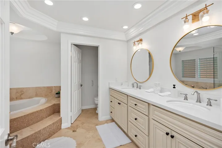 There is a remodeled walk in shower, tub and dual vanity. This home also has a new roof and solar that is paid off. There is a large 3 car garage with a long driveway and the home in on the end of a Cul- De -Sac.