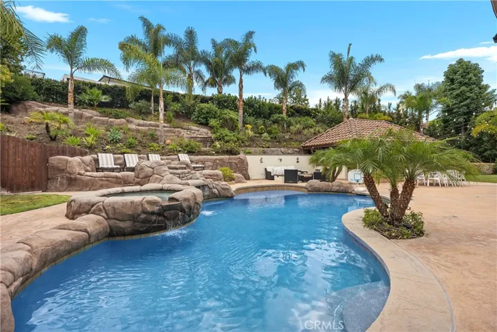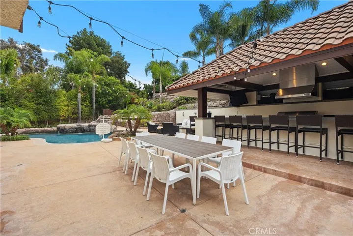 Incredible opportunity to RENT an entertainer’s home with great family neighborhood! Huge resort backyard with a beautiful rock pool and spa. Covered outdoor bar area with two flat screen TV’s, BBQ, ice-maker, burner and seating for eight. There is an additional covered seating area with a fire pit and flat screen TV for relaxing and watching any sporting event! Enjoy music throughout the yard with built-in surround sound sonance/sonos system with 4 music zones and custom lighting as well. There is a convenient outside bathroom and shower.