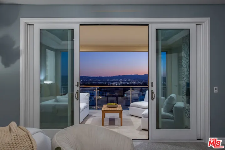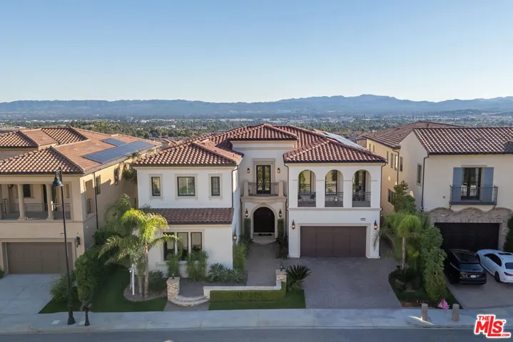 Perched atop a hill within the prestigious, guard-gated community of Westcliffe at Porter Ranch, this newly reimagined five-bedroom, five-and-a-half-bath residence offers sweeping city and valley views. The impressive foyer opens to a bright, airy floor plan where the expansive living room, formal dining area, and Chef’s kitchen blend seamlessly. Two large pocket sliding doors vanish into the walls, extending the interior into the beautifully landscaped backyard, complete with pool, spa, fountains, outdoor kitchen, and fire pit. The sizable Chef’s kitchen features dual waterfall islands, premium WOLF appliances including dual ovens and a built-in coffee station, a SubZero refrigerator, bespoke cabinetry, and a large walk-in pantry. A main-level office, converted gym, and guest suite ensure privacy for visitors. Upstairs, a spacious bonus room offers endless possibilities as either a media room, a home office, or a play area. The grand primary suite is complete with a private balcony featuring a cozy fireplace that overlooks the valley below. The spa-like ensuite bath showcases a freestanding soaking tub, an oversized walk-in shower, dual vanities, and a large custom closet. Designed with modern comfort and sustainability in mind, the home includes an EV charger and a wholly owned solar system with 45 panels, resulting in near-zero energy costs. Ideally positioned near The Vineyards at Porter Ranch, home to high-end shopping, dining, and entertainment such as Whole Foods, La Popular, and AMC Theater, this Toll Brothers Cahill residence also offers access to acclaimed schools.