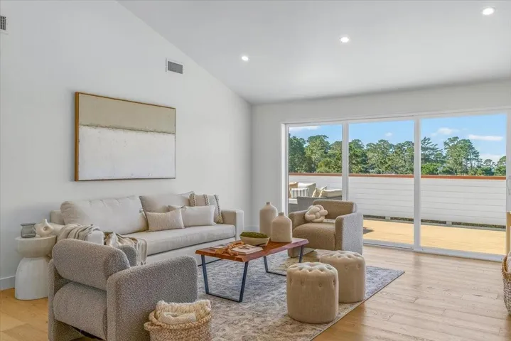 Enjoy breathtaking ocean views from this beautifully remodeled ranch-style home, where modern upgrades meet timeless coastal charm. Featuring 3 spacious bedrooms and 2 luxurious bathrooms, this home boasts a bright, open layout with vaulted ceilings, a chefs kitchen complete with a large island, and seamless indoor-outdoor living. Step outside to a freshly landscaped yard, new fencing, and an expansive 600 sq. ft. TimberTech deck perfect for entertaining or soaking in the views. Inside, every detail has been thoughtfully upgraded, including new windows and sliding glass doors, new stucco exterior, gutters and downspouts, all-new lighting, ceiling fans, and a cozy gas fireplace insert. The primary suite offers a tranquil retreat with California Closets, double sinks, and a walk-in shower. Energy-efficient features include a new furnace, tankless water heater, and updated electrical main and sub panel. The 1,300 sq. ft. finished basement with carpeting and finished walls is ideal for a home office, gym, or media room, complete with a separate heating system. An oversized, finished 2-car garage with an electric opener rounds out this exceptional property. Turnkey, stylish, and move-in ready, don’t miss your chance to own this coastal gem in Pacific Grove,the Last Hometown.