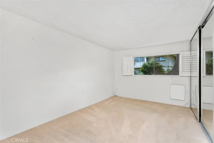 Enjoy resort living, California style, in this spacious 2-BR 2-BA Castilla-model Co-Op. This wonderful first-level unit has been lovingly maintained and offers tremendous opportunity for a buyer to make it their own. Ceramic tile in entry, hallways, kitchen, and both baths. Plantation shutters throughout. The balcony has been partially enclosed, but still offers an outdoor portion perfect for your BBQ. Spacious living room with cozy – and rare – wood burning fireplace. The kitchen features new tile backsplash and includes recently replaced electric cooktop and built-in microwave above, a wall oven and dishwasher. The spacious primary bedroom features a large, wall-to-wall, ceiling-to-floor mirrored closet with built-ins to maximize the space. The ensuite bath offers extra window and storage cabinet along with a walk-in tiled shower featuring new tile and shower door. This home offers in-unit laundry with the existing stacked washer/dryer included. Laguna Woods Amenities – 27 hole championship golf & executive par 3 golf courses (ultra-low greens fees for Laguna Woods members), tennis, 2 fitness centers, 7 clubhouses, 5 swimming pools, equestrian amenities, gardening, wood shop, over 200 clubs, free bus transportation to nearby shopping and Dr’s office. Just a few miles from famous Laguna Beach. True Resort Living for 55+