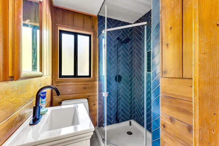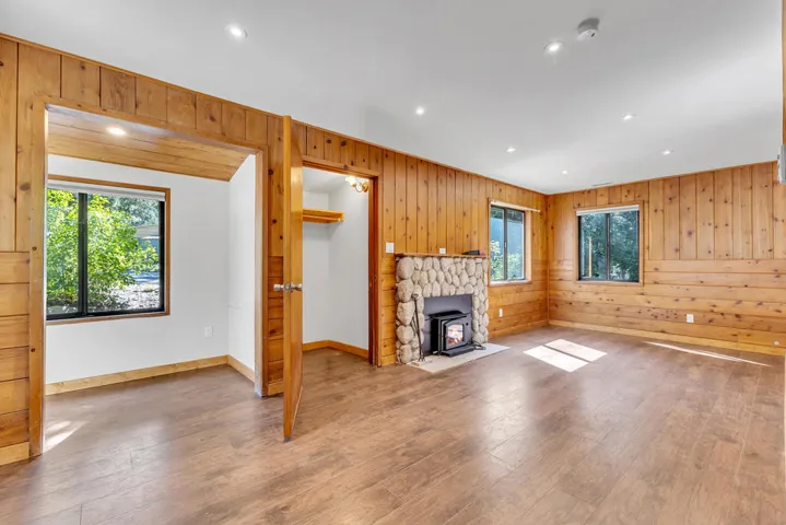 CHARMING UPGRADED CABIN Located in beautiful Fern Valley within walking distance to town, this cozy retreat offers living room with natural pine paneling and rock fireplace with wood stove insert, country kitchen with newer counters, sink and range, bedroom with exterior access to a large private deck, and an upgraded bath with tile shower. A 2023 refresh included new laminate flooring, interior and exterior paint, new roof, and a new 200 amp electric panel. Washer dryer hookups have been installed. Easy access from a county maintained road, extra parking and a very usable lot with ample space for additional improvements or outdoor enjoyment. Great location for walking or biking and easy walk to the Tahquitz Retreat or the village.