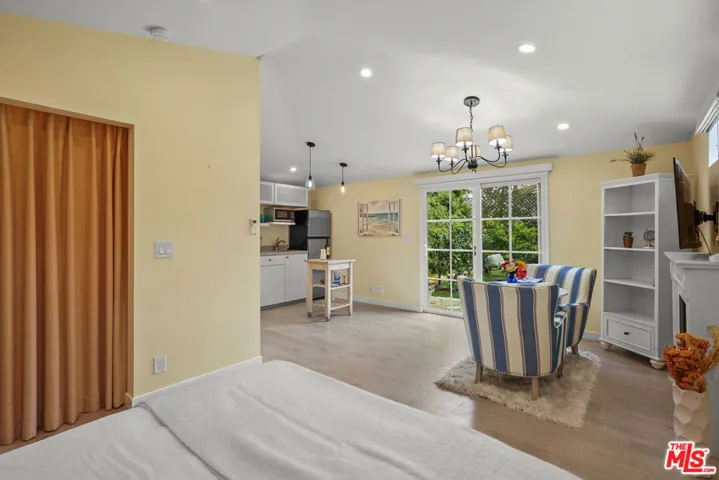 Charming Stand-Alone Furnished Studio Cottage for Lease in the Palisades. Discover this beautiful and serene furnished cottage located in the desirable El Medio Bluffs neighborhood of Pacific Palisades. This private Zen-like retreat offers a perfect blend of comfort, style, and convenience all just moments from the Village and Temescal Canyon hiking trails.Inside, enjoy an eat-in kitchen with a brand new refrigerator, in-unit washer and dryer, and a large closet for storage. The thoughtfully furnished interior includes pieces from Crate & Barrel, Pottery Barn, The Shade Store, Closet Factory, and Miele, along with a Murphy bed and multiple cozy sitting areas.Step outside to over 900 sq ft of private, newly landscaped garden space, fully fenced and ideal for relaxing or entertaining. Additional highlights include:Ductless AC split unit. Additional storage unit in back. Parking for one car plus ample street parking – Utilities and weekly gardening service included. Brand new linens provided. Experience peace, privacy, and luxury in this one-of-a-kind Palisades cottage offering a rare opportunity to live near the Village in an intimate, affordable setting.